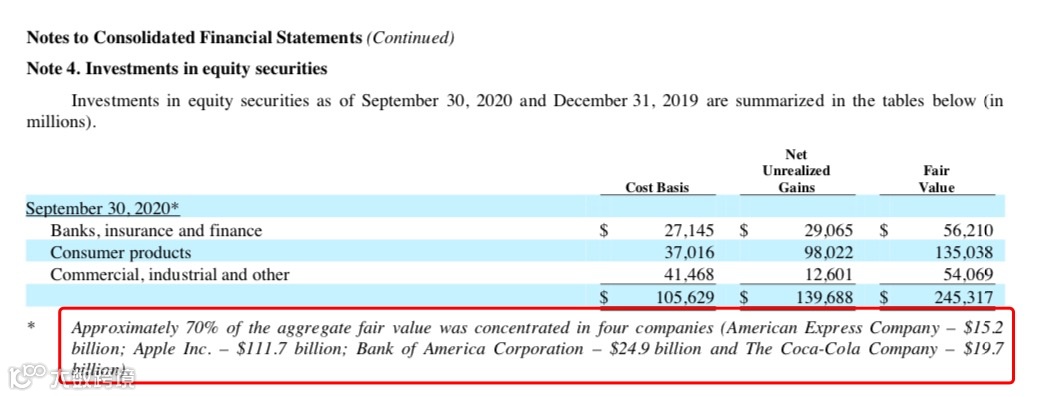 11月7日晚间,“股神”沃伦·巴菲特旗下的伯克希尔哈撒韦公司(BRK.A)披露了第三季度财报。截至第三季度末,伯克希尔·哈撒韦大约70%股票持仓集中在四只股票:美国运通、苹果、美国银行、可口可乐。其中,可口可乐持股为197亿美元。
