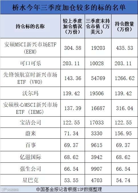 此外,可口可乐还深受达里奥的青睐。11月份,桥水基金(Bridgewater Associates)向美国证监会递交了最新的持仓数据。从加仓情况看,桥水在三季度比较青睐消费股,加仓了可口可乐,三季度末持有203.11万股,持股市值为1亿美元。