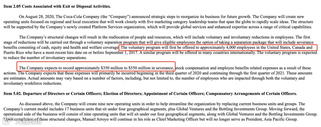此前于8月28日,可口可乐就曾表示,作为全公司重组的一部分,将在全球裁员。尽管没有透露具体的裁员计划细节,但可口可乐表示将向美国、
