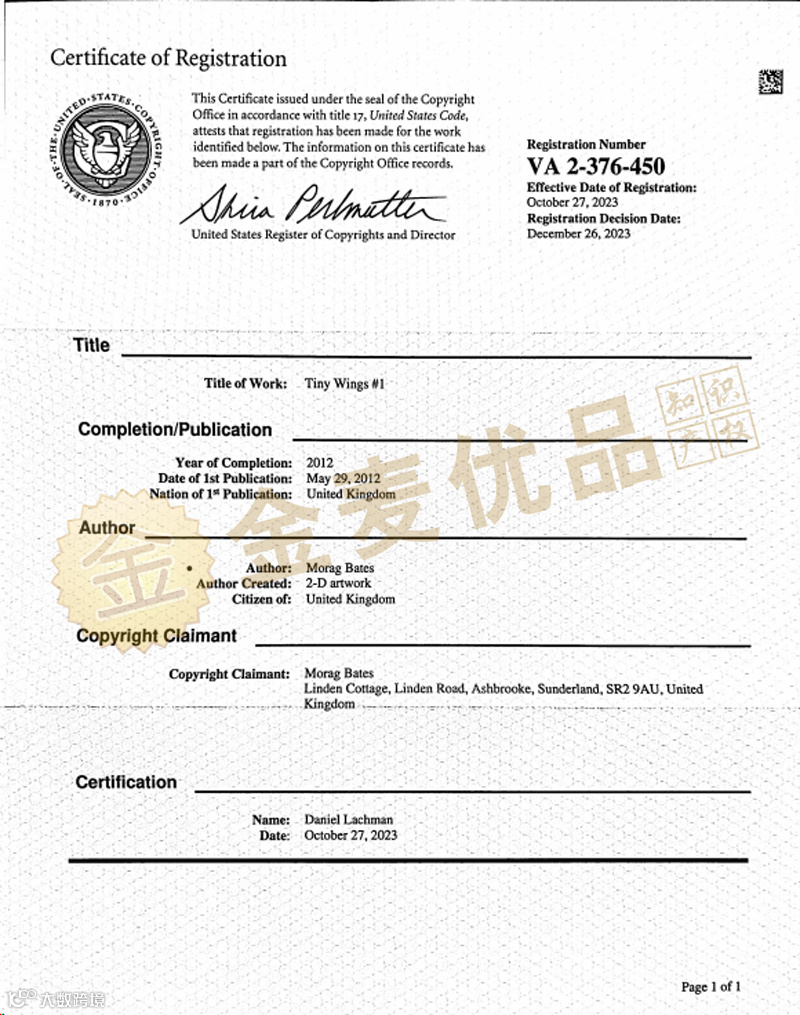 Morag Bates是一名英国杰出艺术家,以其非凡的创意将摄影精髓与数字艺术完美交融,独辟蹊径地构筑了个人鲜明的艺术殿堂。本次涉案的作品是她2012年的匠心之作——《Tiny Wings》,一幅不仅捍卫其版权的经典之作。
