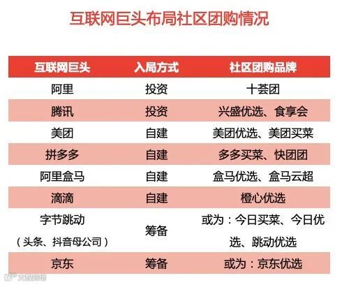 、京东、字节跳动等互联网巨头纷纷加入了社区团购,这些巨头们进入社区团购的品牌分别是:
