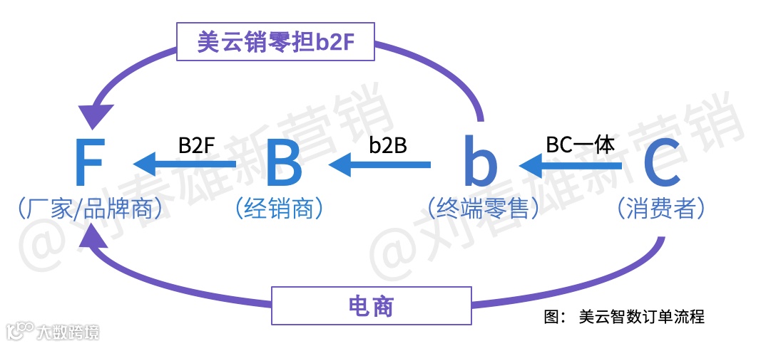 美的集团的美云智数已经在200多家企业得到应用。美云智数是去渠道,但又不是传统渠道的完全网络重现。比如,可以有F2b的订单,这是传统渠道不可能 出现的。因此,数字化在物流、信息流、订单流完全可以不按渠道层级一级一级再现。