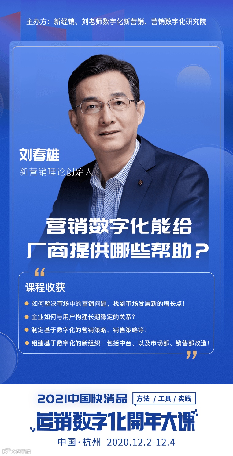 12月3日-12月4日, 由新经销、刘老师数字化新营销、营销数字化研究院联合举办的「2021 中国快消品营销数字化开年大课」将在