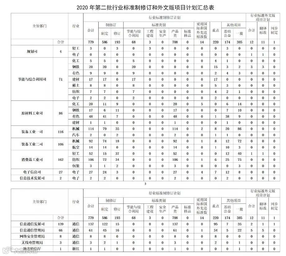 根据工业通信业行业标准制修订工作的总体安排,我部编制完成了2020年第二批行业标准制修订和外文版项目计划。现印发给你们,请认真组织落实。具体要求如下: