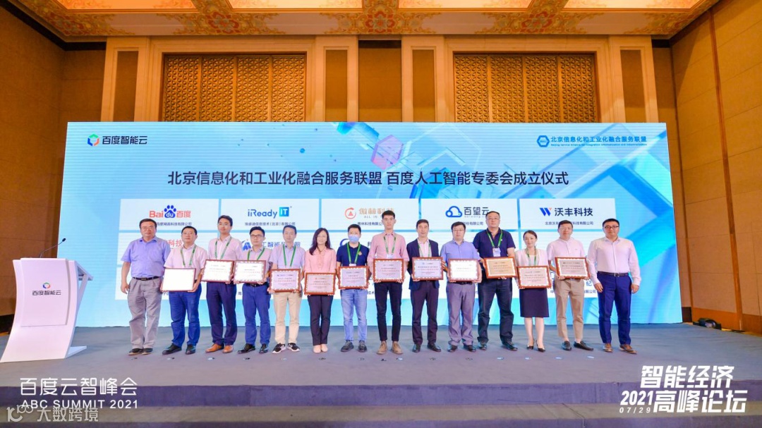 联盟闫同柱理事长和专委会会长百度智能云战略解决方案及业务拓展总经理常城分别为京津冀国家技术创新中心、埃睿迪信息技术(北京)有限公司、中科寒武纪科技股份有限公司、北京亚控科技发展有限公司、傲林科技有限公司、神思电子技术股份有限公司、浪潮(北京)电子信息产业有限公司、上海汉得信息技术股份有限公司、机科发展科技股份有限公司、百望股份有限公司、东华大学人工智能研究院、北京沃丰时代数据科技有限公司、南水北调东线智能水务(北京)有限公司、国邦(深圳)产业资本控股集团有限公司共14家副会长单位授牌。