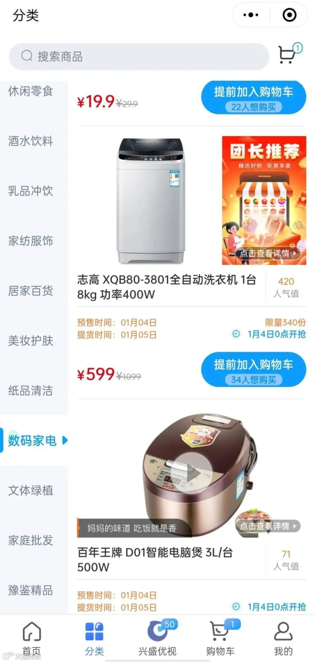 对于滴滴而言,社区团购是一个全新的赛道,生鲜品类高频率的购买可为其“0188”的目标贡献不少订单量;对于美团,社区团购是其同城零售的重要组成部分;对于阿里、京东和拼多多,除了可以以低成本获取下沉市场用户和流量之外,也是一种对新兴电商模式的防御。新浪科技发现,除了蔬菜、水果、日用百货这些常规品类之外,兴盛优选还卖起了冰箱、洗衣机、空调等大家电,甚至涉足了服饰家纺、品质家具、酒类等。