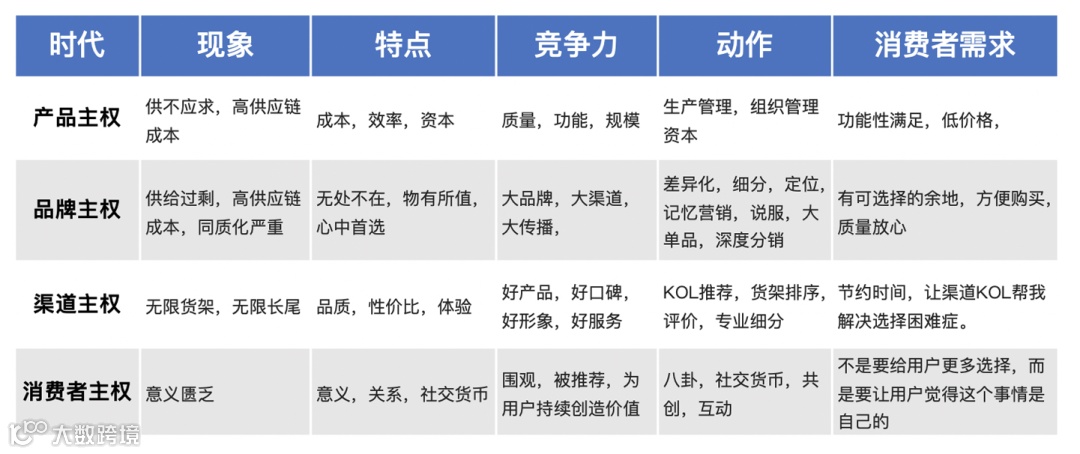 前三个主权时代笔者分析的逻辑是基于结构性的变化,从供应短缺产生的买方市场,到了供给过剩,电视出现,产品开始品牌化,差异化,再到了互联网的普及,特别是移动互联网,让流量的集中化进一步加剧。每一次的更迭,都是不同维度的变化,