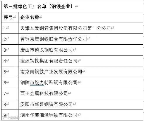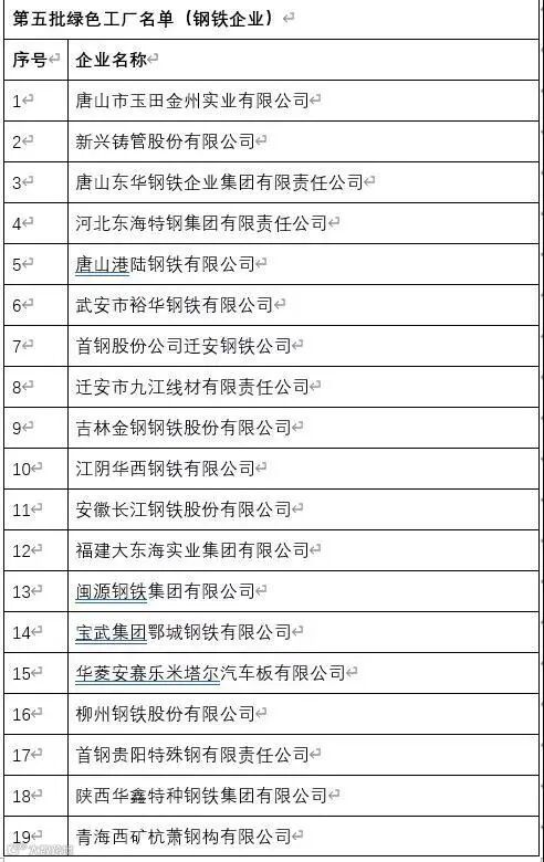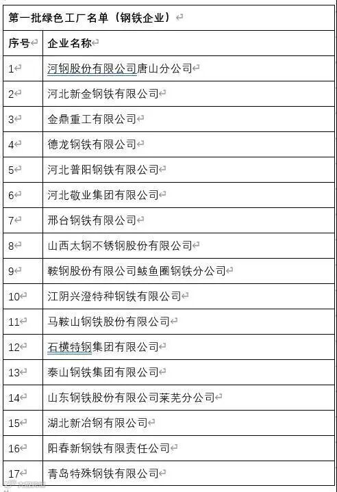 以时间为序,让我们来梳理从第一批到第五批绿色工厂中,到底都有哪些钢铁企业“榜上有名”。