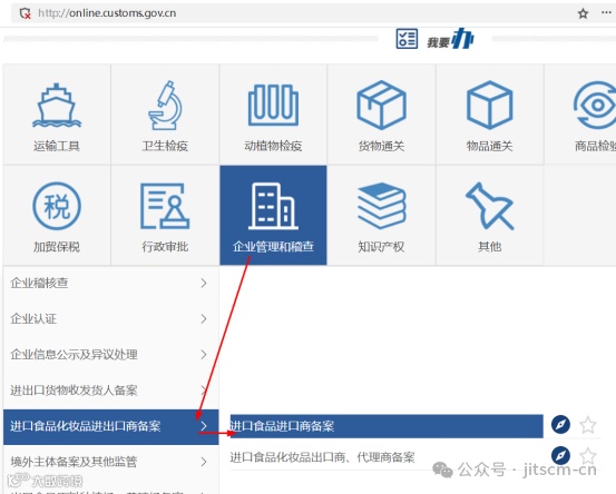 一体化平台(http://online.customs.gov.cn),进入“企业管理和稽 查”版块办理。