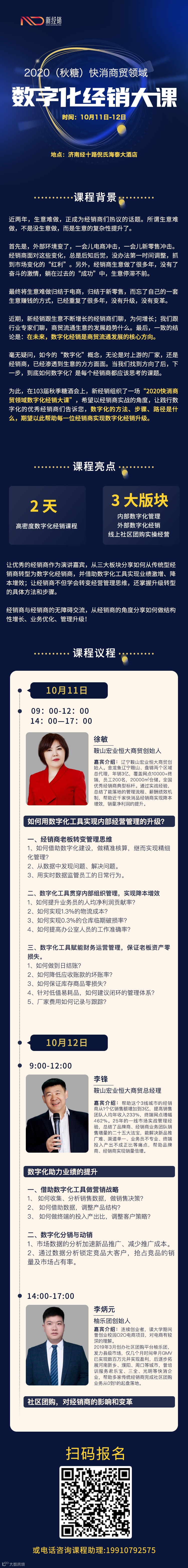 PS:新经销将于10月11日-10月12日在103届秋季糖酒会上举办「2020快消商贸领域数字化经销大课」,希望以经销商实战的角度,让践行数字化的优秀经销商们告诉您,数字化的方法、步骤、路径是什么,期望以此帮助每一位经销商实现数字化经销升级。