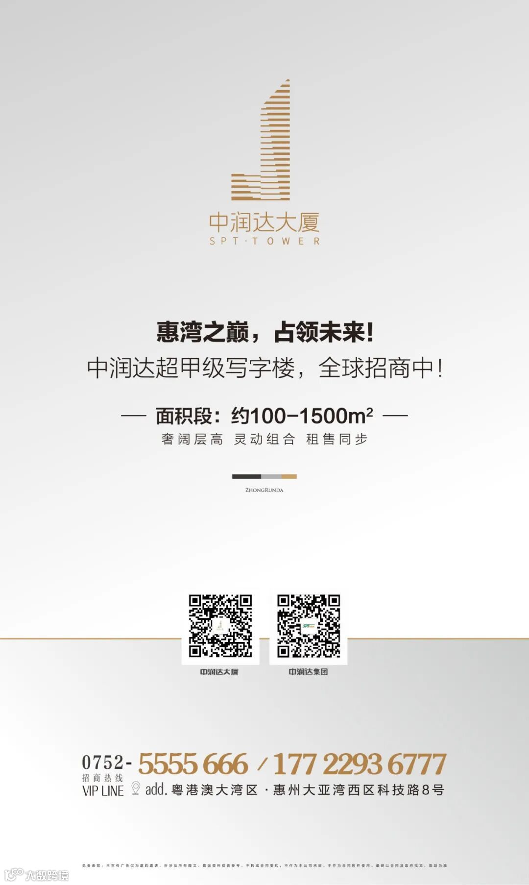 中润达大厦位于广东惠州大亚湾区行政商务中心区,是集商务办公、高端酒店、云端展厅、金融服务、商业配套为一体的地标商务综合体,为大亚湾区目前已建成的第一高楼,各项技术指标达到超甲级写字楼标准,致力打造成为大湾区总部经济基地。