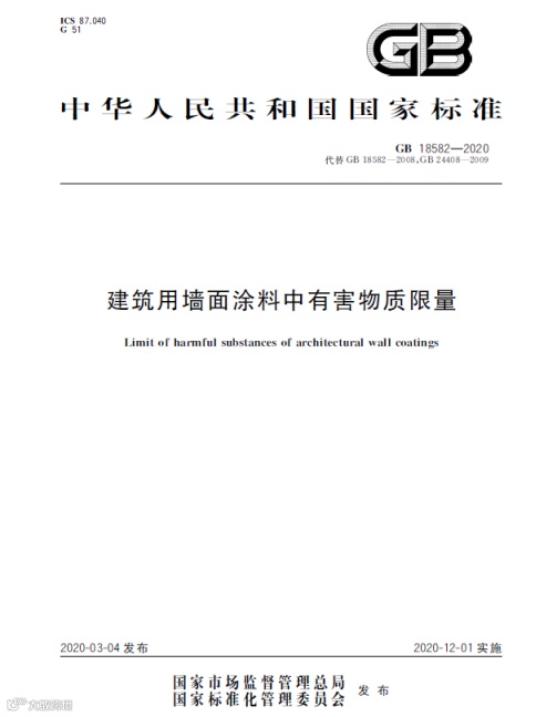 新版墙面涂料强制性标准要求自实施之日起不得在现场涂装中使用溶剂型建筑用墙面涂料(即用有机溶剂来稀释分散),对于水性墙面涂料(即用水来稀释分散)分为6个检测项目,即VOC含量、甲醛含量、苯系物总和含量、总铅含量、可溶性重金属含量(镉、铬、汞)、烷基酚聚氧乙烯醚总和含量。装饰板涂料分水性和溶剂型装饰板涂料,其中水性装饰板涂料为VOC含量、甲醛含量、总铅含量、可溶性重金属含量(镉、铬、汞)、乙二醇醚及醚脂总和含量5项,溶剂型装饰板涂料在此基础上增加卤代烃总和含量、苯含量、甲苯与二甲苯(含乙苯)总和含量3项检测项目。