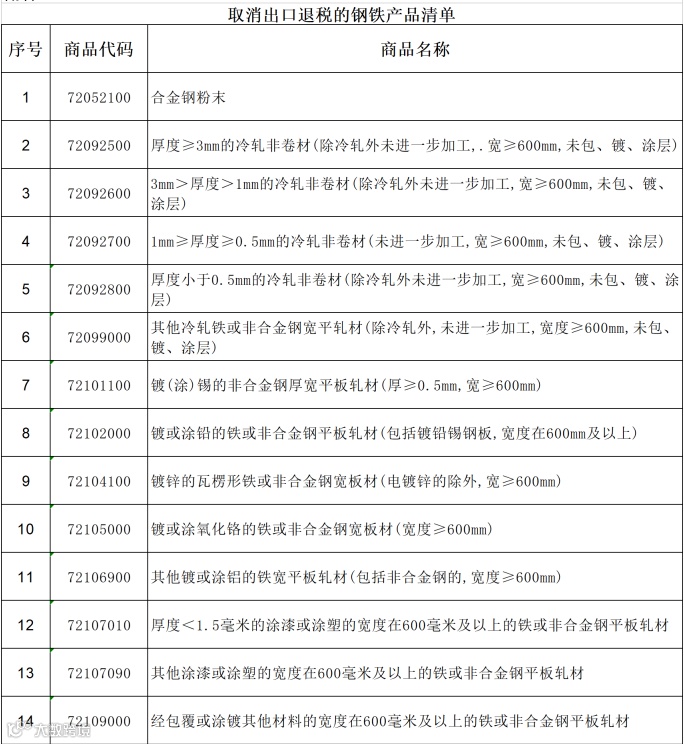 ●取消部分钢铁产品出口退税,以出口货物报关单上注明的出口日期界定。