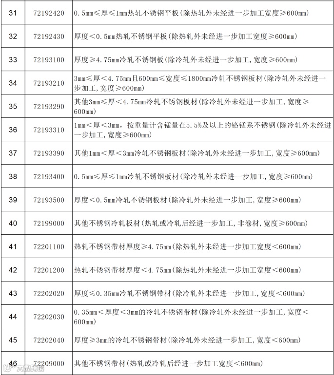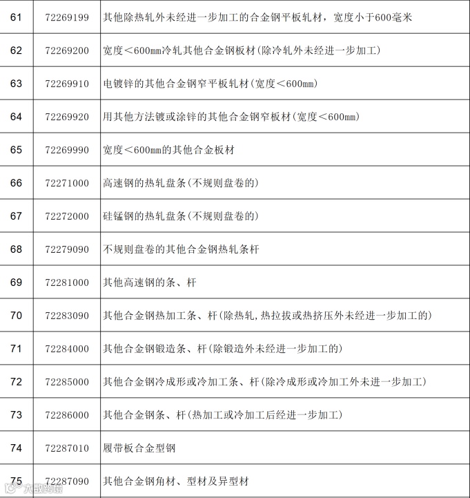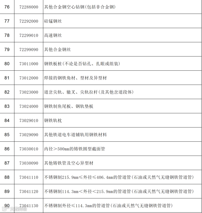 ●生铁、粗钢、再生钢铁原料、铬铁等产品实行零进口暂定税率;