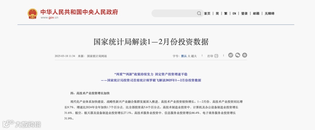 2025年前两个月,航空航天器及设备制造业投资同比增长27.1%,计算机及办公设备制造业投资增长31.6%。
