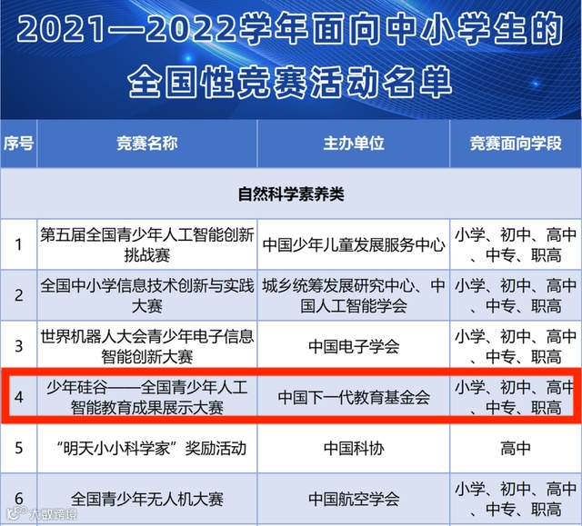 随着科学发展进入新时代,科技自立自强已经成为国家发展的战略支撑,为推动全面实施素质教育,促进科技创新与教育相结合,引导学校培养学生科学素养和创新精神,激发广大少年儿童投身建设科技强国的热情,2021年9月,经教育部(教监管厅函〔2021〕7号)批准第二届 “少年硅谷——全国青少年人工智能教育成果展示大赛” 将在全国范围内举办。