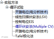用户可在应用循环试验的方法时,再添加不同的实验方法,并通过右侧数据窗口,查看对应实验数据。数据实时按照实验方法进行分类。