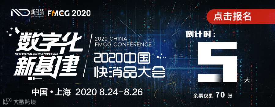 PS:2020年8月24日-26日,由新经销举办的第2020年(第三届)中国快消品大会将在上海震撼开启!100+重量级分享嘉宾,2000+快消行业从业人员,16场重磅议题。本届大会将以“数字化新基建”为主题,发掘数字化新基建为行业带来的机遇和启发!