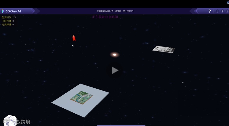 当飞船冲出大气层会产生失重,在3D One AI内,使用“控制”指令可控制飞船稳定运行,通过键盘操控调试,才能使飞船完美的落在月球上喔。