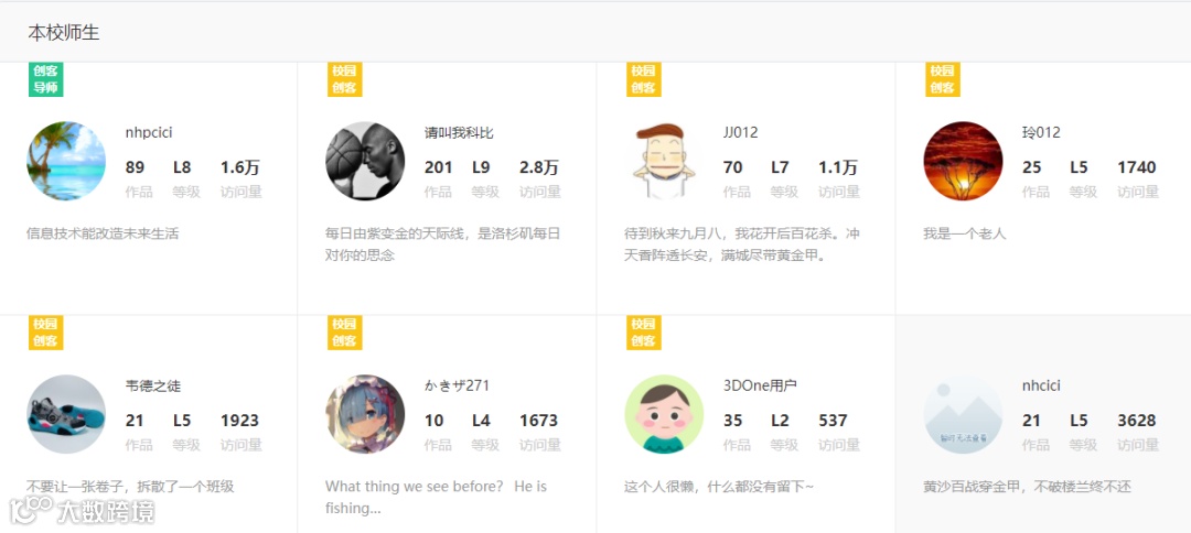 强烈的求知欲驱使孩子们创作的热情。每位同学通过注册i3DOne社区会员,把自己的作品上传到平台上,线上与远方的3D爱好者进行交流学习:有的同学会积极参与i3DOne社区擂台PK活动,与创客大神竞技切磋。有的同学会将自己的创作过程制作成教程,与全球的小创客们分享创意....