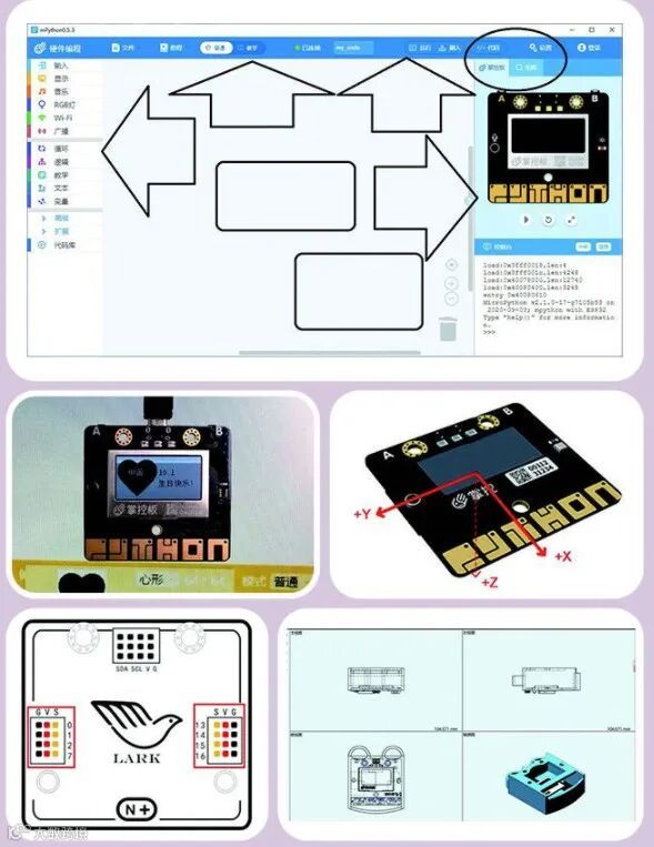 其中前期实物外壳设计环节,采用3D One教育版插入电子件功能,进行三维建模。最后结合3D设计与3D打印的项目式作品设计,让读者系统地了解掌控板各方面的创意编程方式,抛砖引玉,激发读者的创作欲。