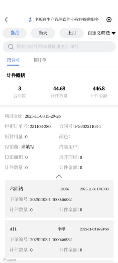 当登录人为管理员、拥有电脑端计件工资->计件工资明细的权限的员工,登录后,可以看到每个合同下,完成计件工资情况