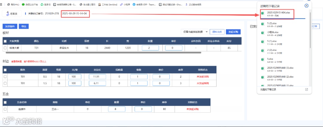 11、柜柜排版采购单导出文件名改成项目地址
