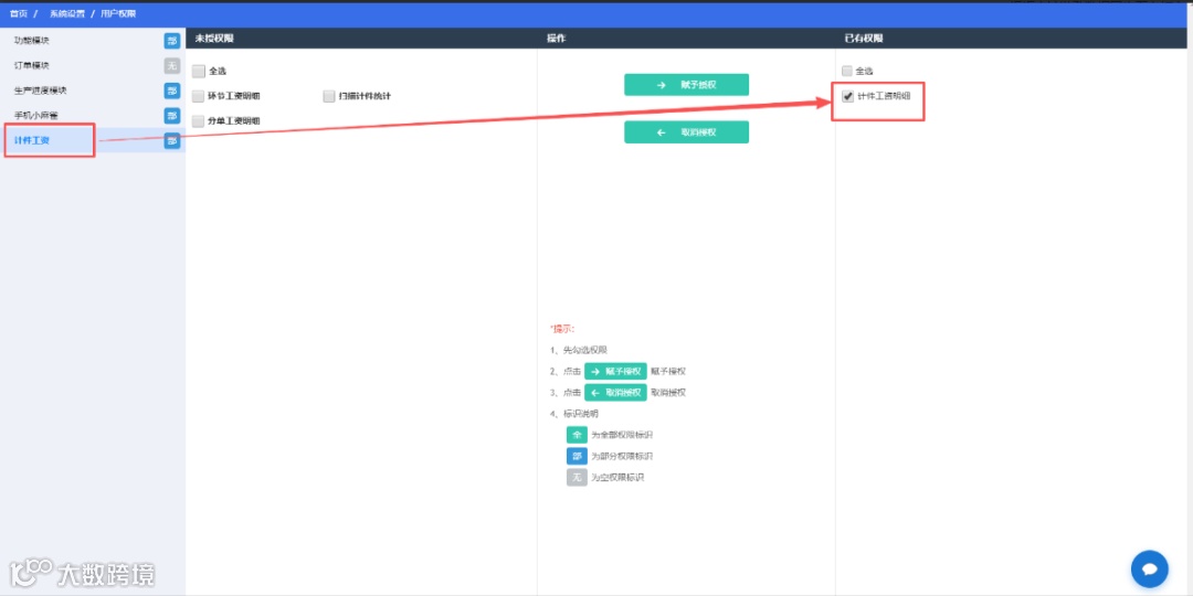 如果没有此权限且不是管理员,则只能看到自己完成的环节与时间