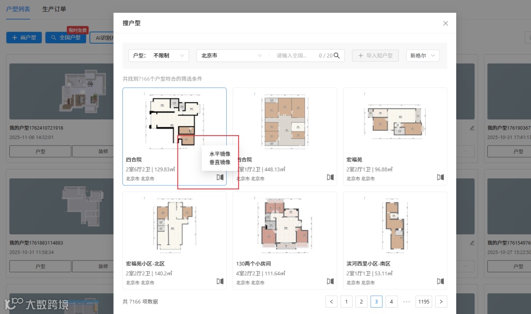 4、户型图,新增【镜像功能】,支持对户型进行整体镜像处理,且保证镜像前后数据一致