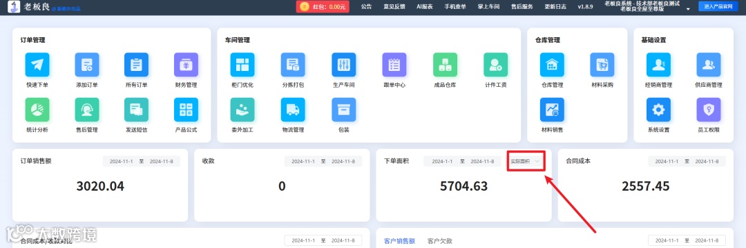 3、老板良首页统计-下单面积新增“实际面积”