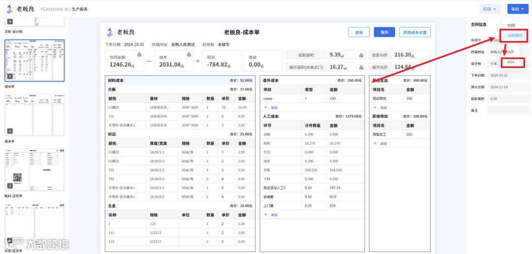 2、所有订单-生产报表-成本单-导出-当前模块,增加导出Excel