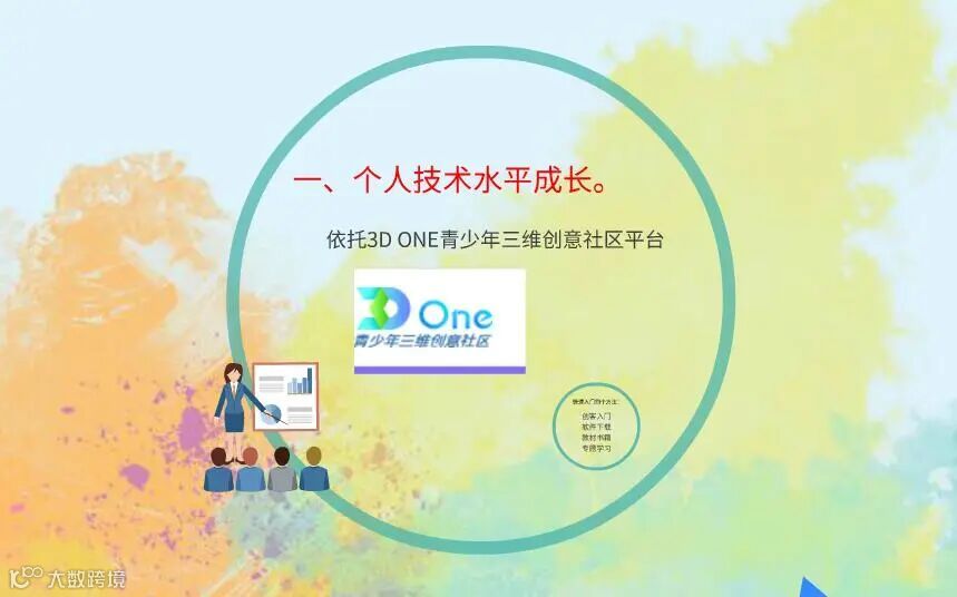 接着重点介绍i3DOne青少年三维创意社区给老师带来的成长及成就,并分享了自己的3D教育教学实践经验。相信看完此次课程的你,一定收获满满!