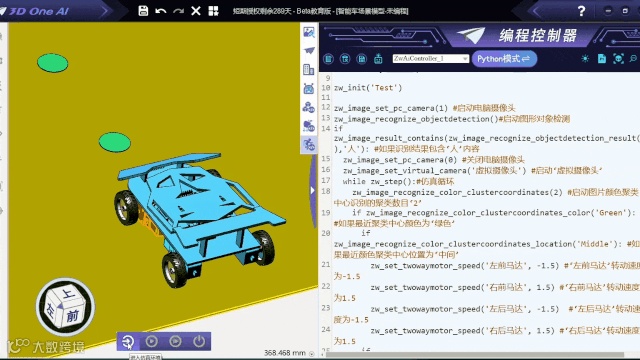 基于物理刚体运动与时间系统的概念,3D One AI具备强大的三维数据处理与显示能力,孩子可通过编程或界面交互的多种形式,灵活运用平台的虚拟开源硬件技术与人工智能技术,动态仿真人工智能运行环境并支持输出三维动画,通过体验和运用人工智能技术,动手实践并综合学习多学科知识。