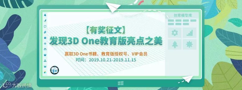 三等奖(40名):小编根据文章分享的教育版亮点数量、质量计算总分排名评选,总分第13-32名的20名老师、20名学生各赠送1张3D One教育版短期授权5折券+1张VIP会员5折券。