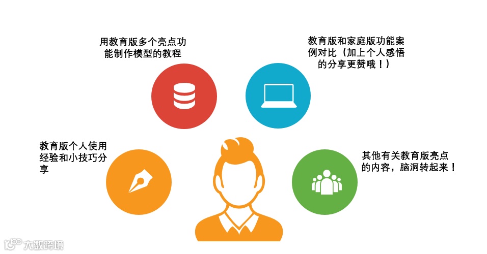 一等奖(4名):小编根据文章分享的教育版亮点数量、质量计算总分排名评选,总分第1-2名的2名老师、2名学生各赠送价值728.9元的创客礼包(1年3D One教育版软件授权+1年i3DOne社区VIP会员+内蒙鄂尔多斯少年宫杨峻岳老师新书《小创客3D打印多元指导》一本)
