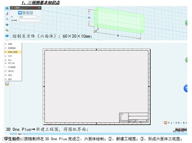 1、 知识与技能:3DOne建模指令综合应用与工程图(三视图)的形成与分析;