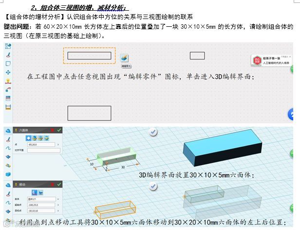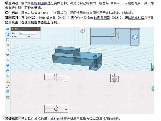 本周的限免课件来自广州开发区外语通用技术学校的彭振建老师。彭老师通过在3D建模特色课程中利用3D One Plus集成的三视图功能,教会学生对简单和复杂几何体的分析方法,并形成规范的作图意识,培养学生自主研究和学习的能力。