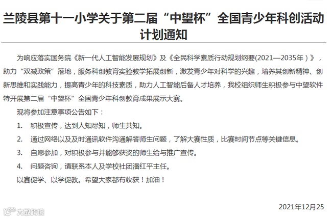 山东省临沂市兰陵县第十一小学,组织了全校师生,利用假期参与“中望杯”全国青少年科创教育成果展示大赛,既丰富了学生的寒假生活,又保持了学校科技创新教育的连贯性和持续性。