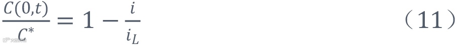 式中iL为极限电流,1为扩散层厚度,联立两式,可得: