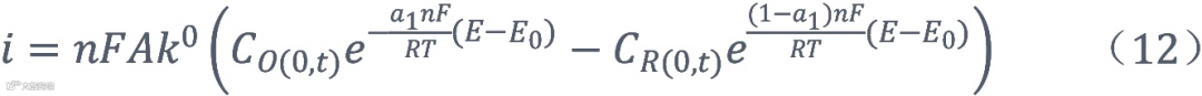 对于这两个电极反应,假设都是基元电化学反应,则反应的电流和电位满足Butler-Volmer公式的电流-过电位方程,可表达为:
