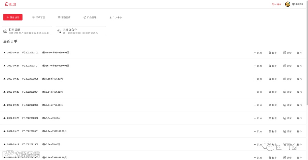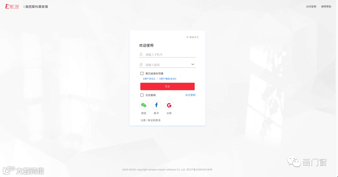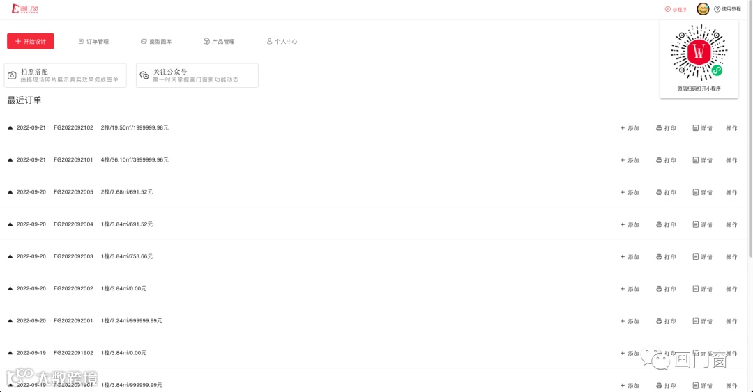 增加了小程序入口,鼠标悬停右上角的小程序按钮,显示画门窗小程序,手机微信扫码就可直达画门窗小程序。