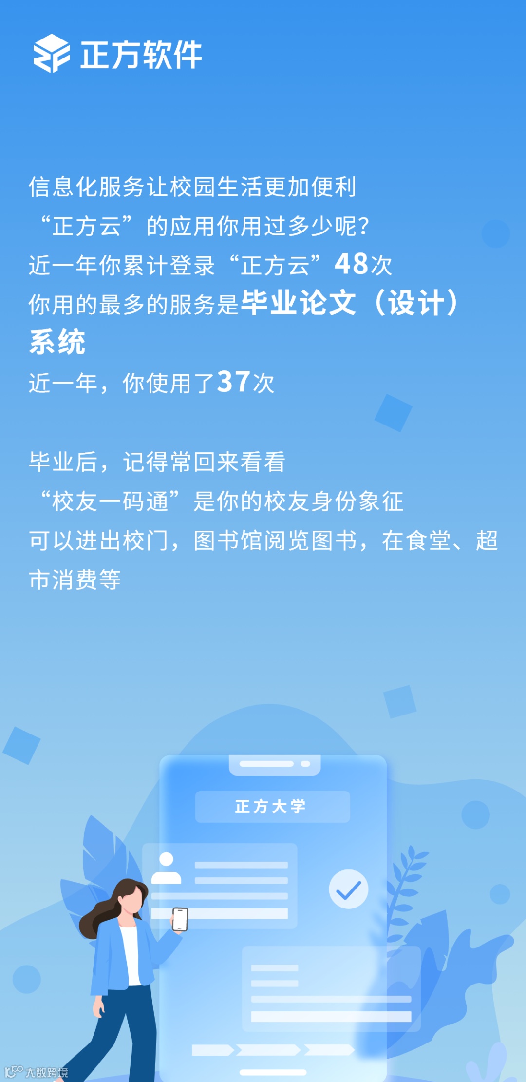 这个毕业季,别让时光匆匆溜走!打开你的正方毕业报告,让数据成为我们青春的忠实记录者、成为未来我们回味这段岁月最珍贵的宝藏。