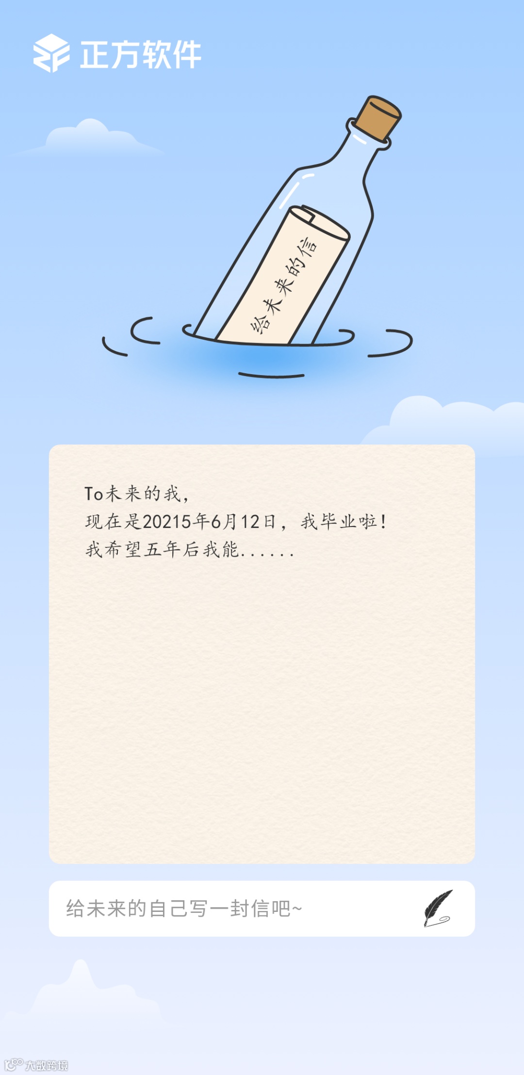 给未来的信:此刻,站在人生的十字路口,你或许心怀憧憬,或许有些许迷茫。没关系,将这些最真实的期待与困惑,都写进这封特别的信里吧!它将如同一只穿越时光的漂流瓶,带着你的初心和感悟跨越时间。