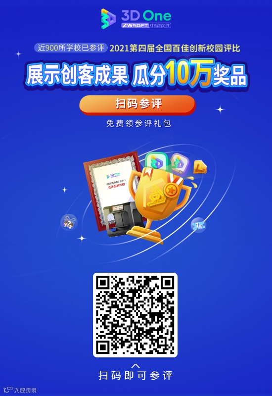 为了让更多人关注到像芳草小学这样的创新教育力量,向全国展示学校培育创客菁英的累累硕果,中望软件推出2021第四届全国百佳创新校园评选活动,全方位凸显学校年度教学成果。师生可以一起边学边评比,配合评比价值10万+的评比激励(全国性荣誉奖牌、3D打印机、免费授权码等),教学成效更显著!