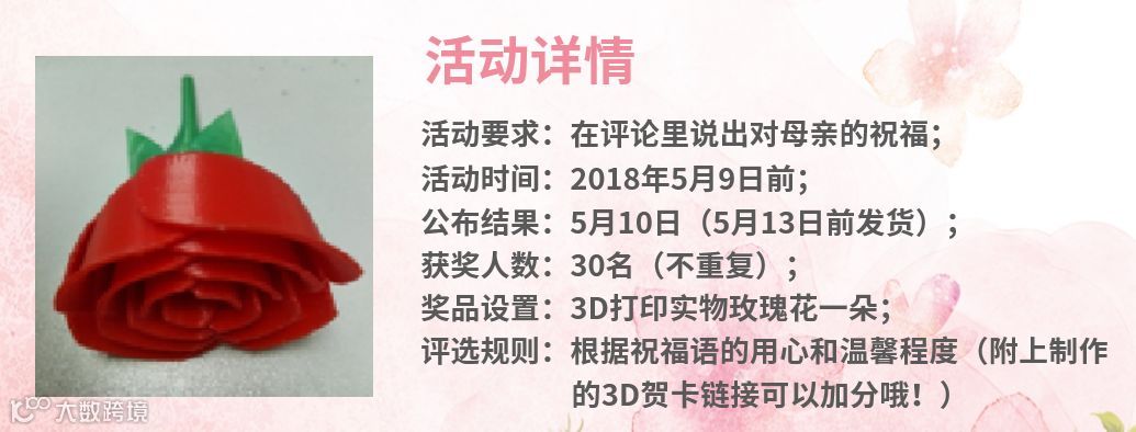 想不到送什么不要紧,这次社区帮你送!只要说出你对母亲的祝福语,就能得到3D打印的玫瑰花哦!