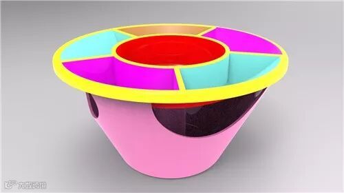 1)九维科技曾凤连老师分享的《多功能旋转果盘》,将生活中常见的果盘经行创意改造,在下方增加垃圾桶的设计,让果盘功能更加丰富实用。