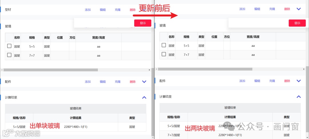 因为玻璃公式要支持一个玻璃位置上输出多块玻璃,原功能需要做变更。