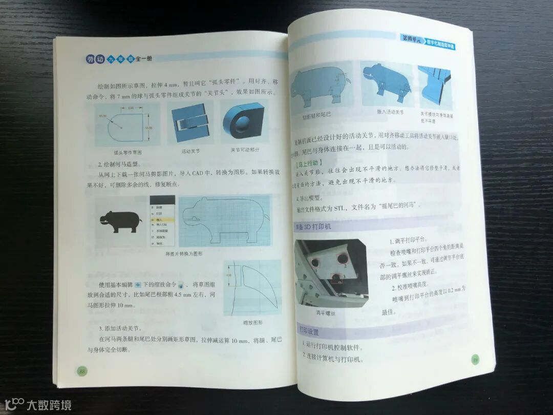 在该教材中,用杯子、河马等多个课例,让学生了解数字化制造方面的知识,让学生感到3D设计学习和3D打印、激光切割实践这些技能,是一个生动活泼、多姿多彩充满乐趣的过程。