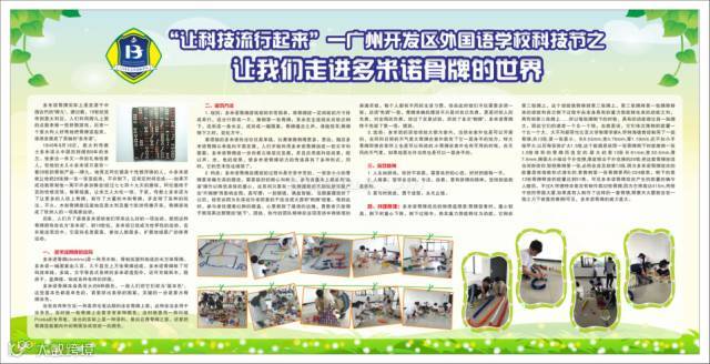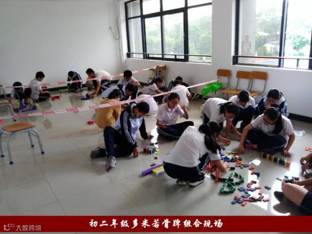 初二级各班组织对看似简单的多米诺骨牌的基体调查研究,结合物理、数学等知识进行多米诺骨牌实验,例如如何合理分工协调关口、阶段性安全保障等。在正则楼课室内进行年级多米诺骨牌组合展示,大型骨牌群倾覆场景博得阵阵惊叹声。他们还结合生物科学对生命的见证和环境的研究,展示了研究过程,分别有《南湾水乡水污染调查》、《喂兔子记》、《见证神奇的生命形成过程—观察去壳鸡卵胚胎发育过程》、《探究碱性溶液对植物的萌发以及生长发育的影响》;