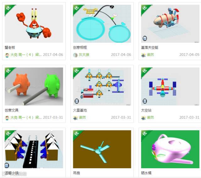 唐迎春老师《中小学3D打印创意设计》获得2016年广州市青少年科技创新培育项目专项”导师培育辅导项目,也获得2017年广州市青少年科技教育项目立项。唐迎春老师在高二年级信息技术课、学生社团活动中开展3D打印培训一年并编写了《3D打印与建模入门》校本课程。带领学校创客团队,掀起3D设计创作的新热潮,以下是学生们的部分作品: